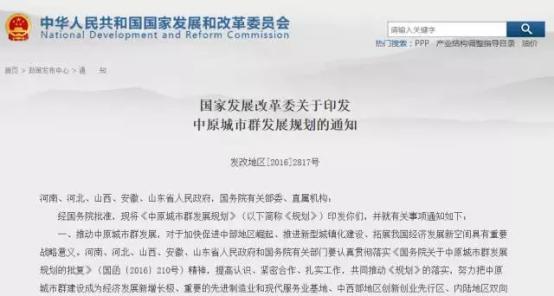 2017年1月5日,國家發改委印發通知,明確了中原城市群發展規劃的重大工程項目。項目以“鐵公基”為主,在未來5年內逐漸開工。隨著這些基建工程的鋪開,沿線城市群的城區改造、商品房建設工程,自然是水漲船高的。
